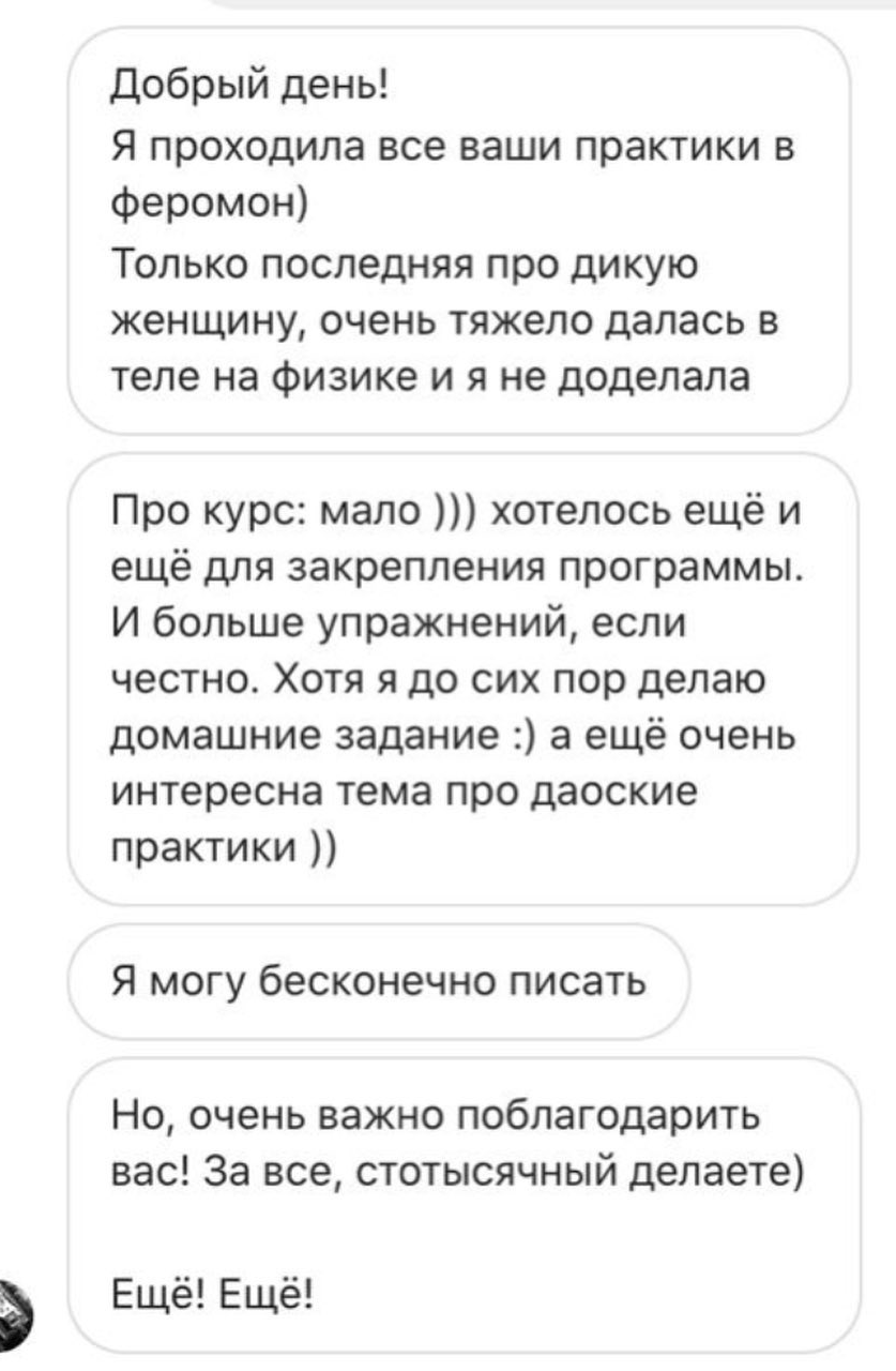 В конце каждой темы ученицам будут даны телесные и энергетические практики. Это не теоретический, а практически курс!